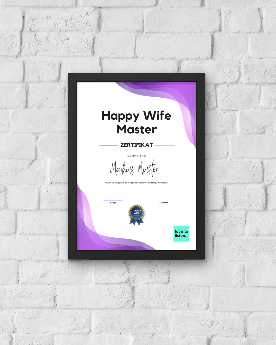 Feiere deinen Erfolg! Nach Abschluss der Masterclass erhältst du dein exklusives Happy Wife Master Zertifikat